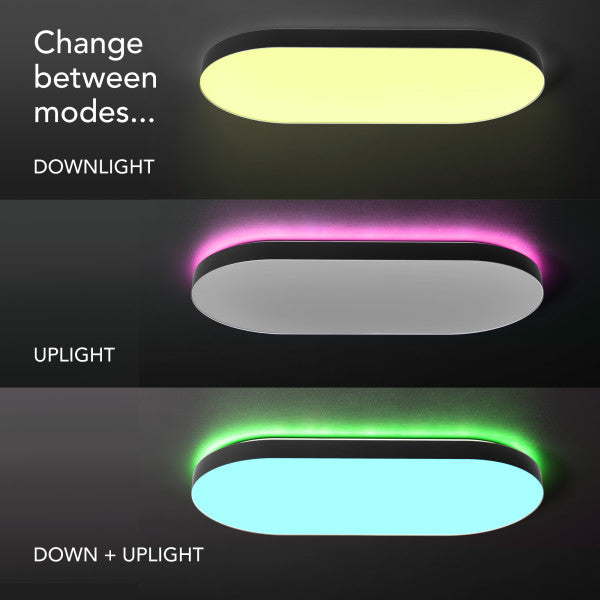 A smart, simple, extra bright (5000 lm), color ceiling capsule light can take bedrooms to sleep-pods; kitchen tables to dining events; and living rooms to cinemas. Watch the clouds roll by with morphing effects or paint on custom colors directly from the app. Control with voice, app, sensors (not included) and partner integrations. With Wi-Fi, you don't need a bridge or hub to set it up, just onboard with the LIFX App. No extra bits of hardware will be cluttering up your surfaces – the ceiling light works straight out of the box. Works with Alexa, Google, Apple HomeKit, and more.