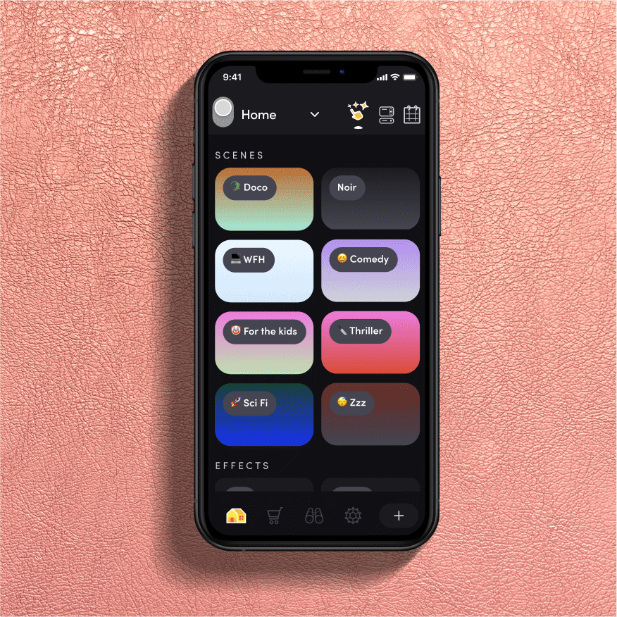 With the LIFX app, set each individual light in your living room to the perfect shade, color and brightness, then capture every setting in a single Scene to use for movies to come. Whether the film of the night is drama, comedy or horror, you can get the vibe just right, every time.