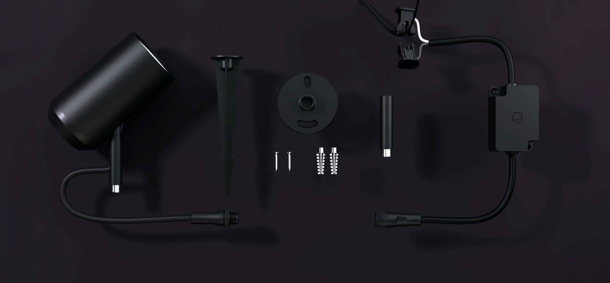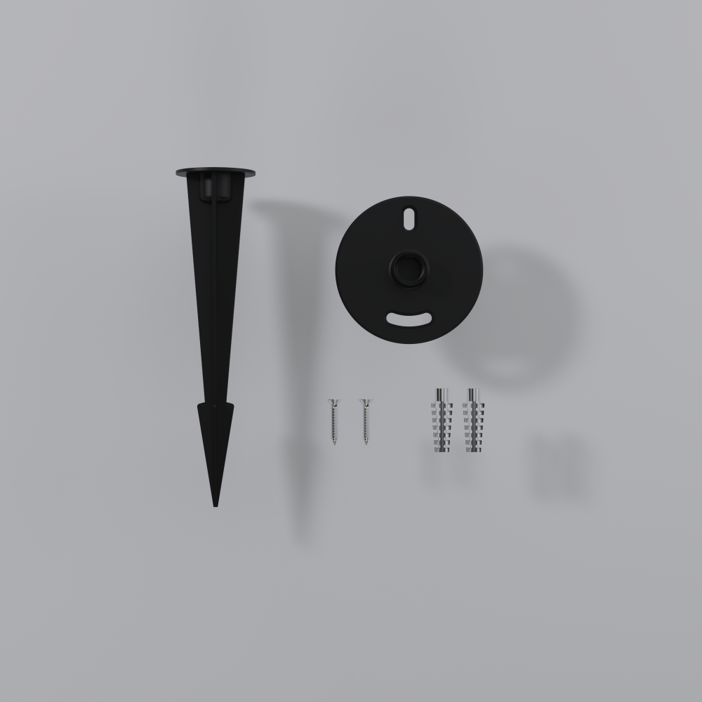 Use this to put the Spotlight in garden beds and other in-ground locations. Find the desired location and plant the mounting stake (seen here) by firmly pressing it into the soil.
