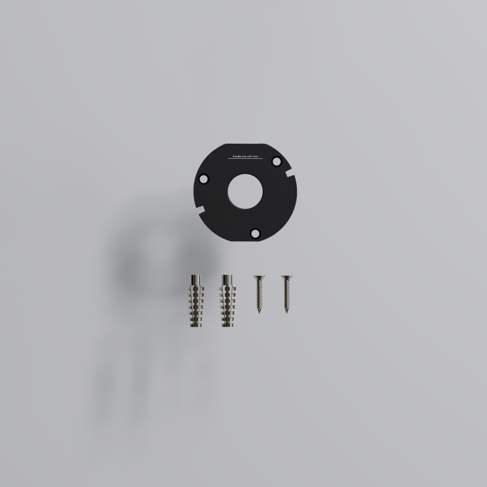 - Alternative base mount and screws for installation on solid surfaces