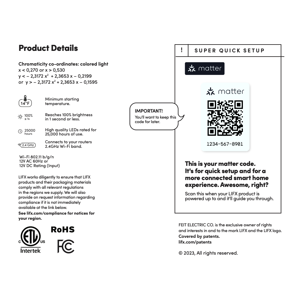 Lost your user manual? Don't worry, you can also find the 11-digit Matter code printed on the back of your Spot Light. You can type this in manually during setup.