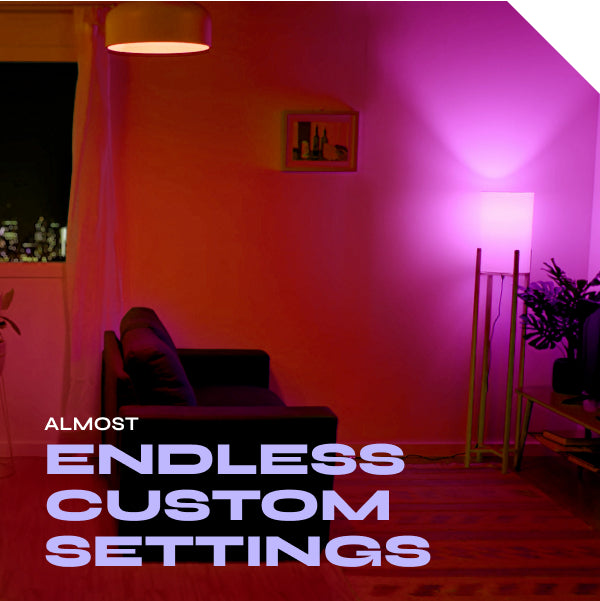 - Full-spectrum of colors + tunable cool to warm whites (2700K–6500K)