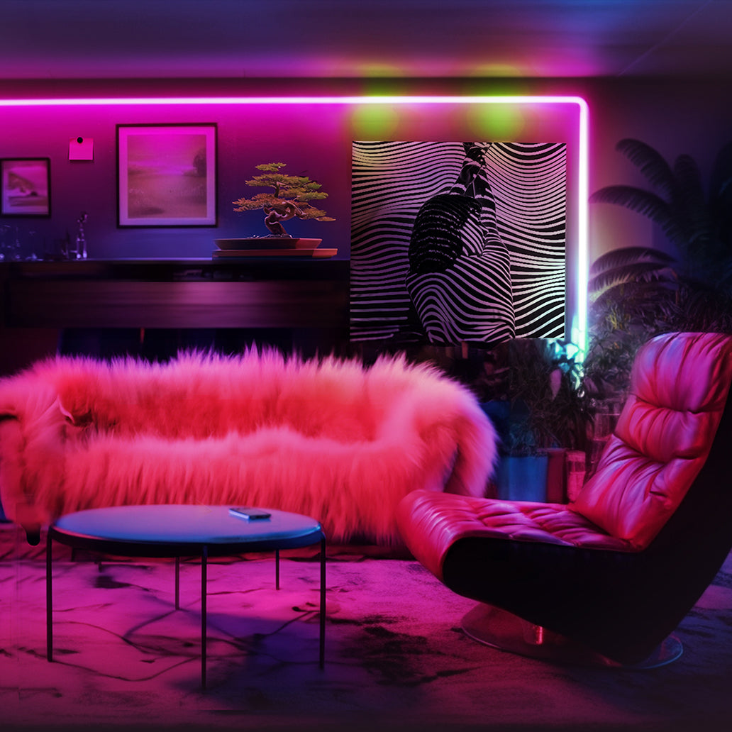 Get ready for futuristic, flexible linear light. The 16ft LIFX SuperColor Neon Flex is a powerful, ultra-bright rope light. It's bendable, smart, and has blendable PolyChrome color you can change, move or paint with custom art. It's sized to suit abstract framing furniture pieces, shelving o or creating a glowing edge on your desk or other surfaces.