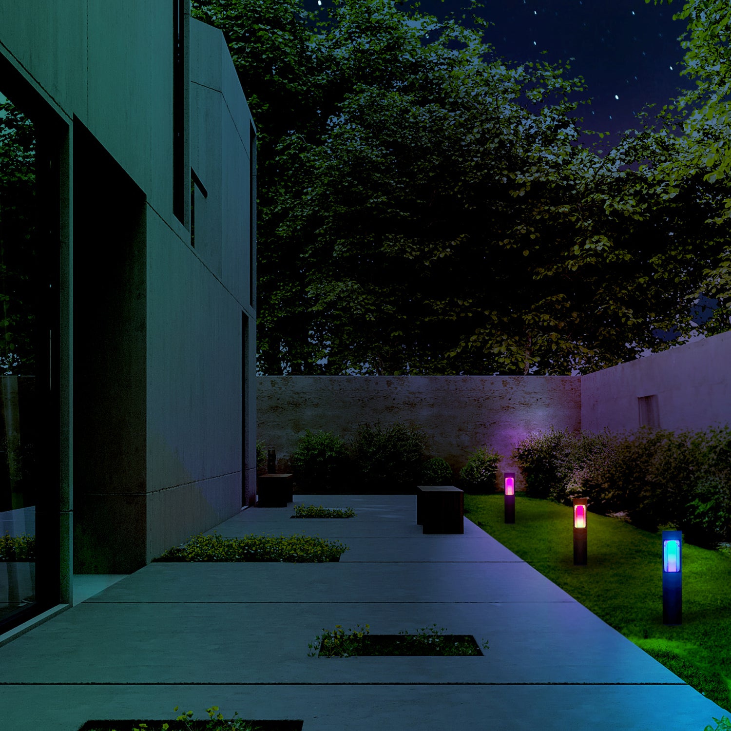 Just another path light? No, a LIFX SuperColor LED path light. This is unlike any low voltage landscape light you've ever seen. Not only can it illuminate your outdoor paths with classic warm ambience, but it can shift into vibrant color and dynamic motion that will transform your garden into a wonderland. Each smart path light has six addressable color zones, creating unique tones and casting reflections that feel like, well, magic.